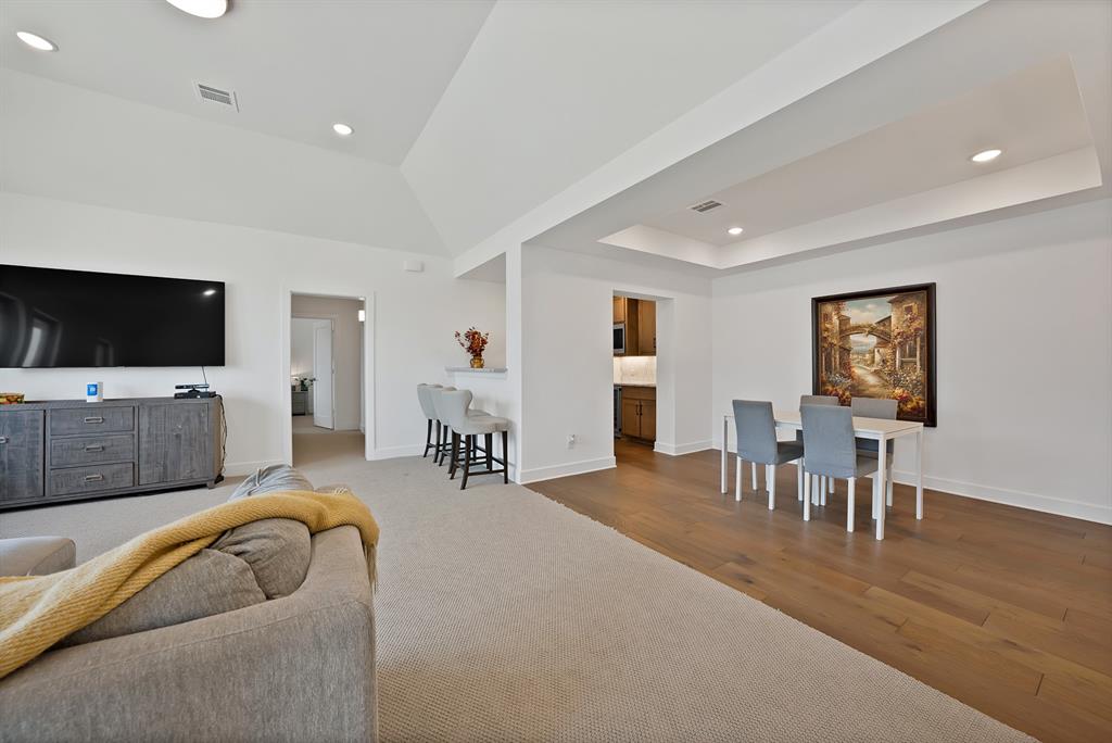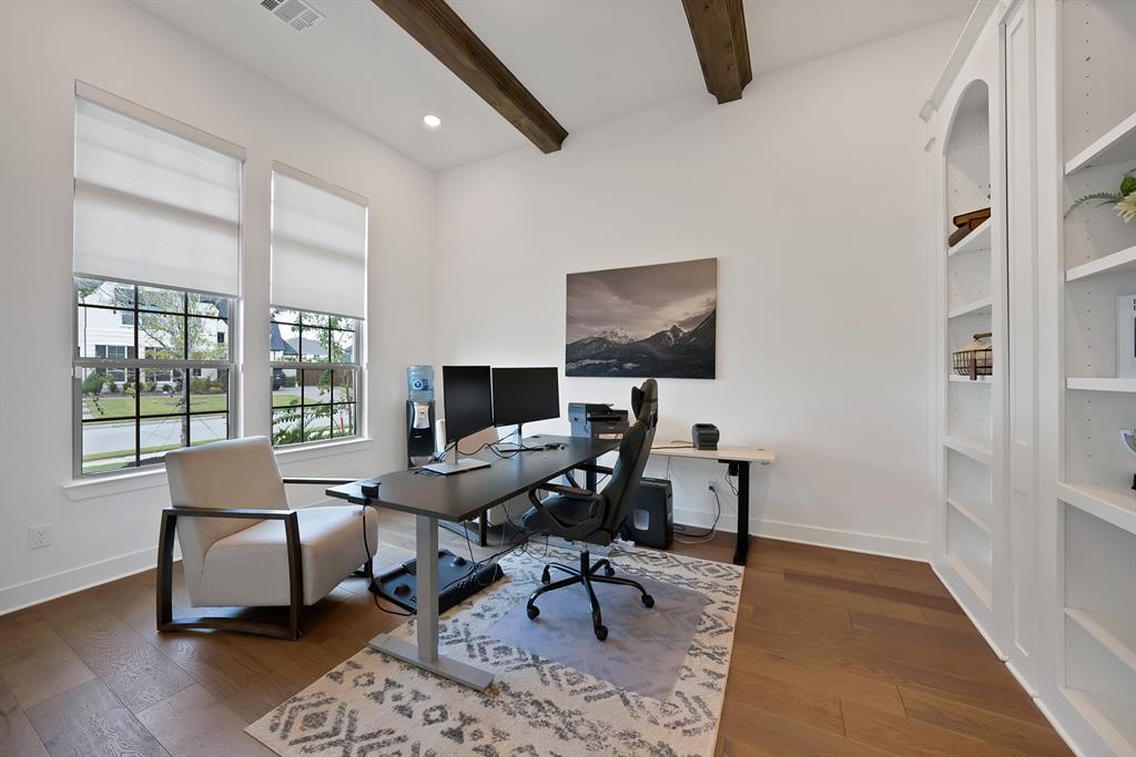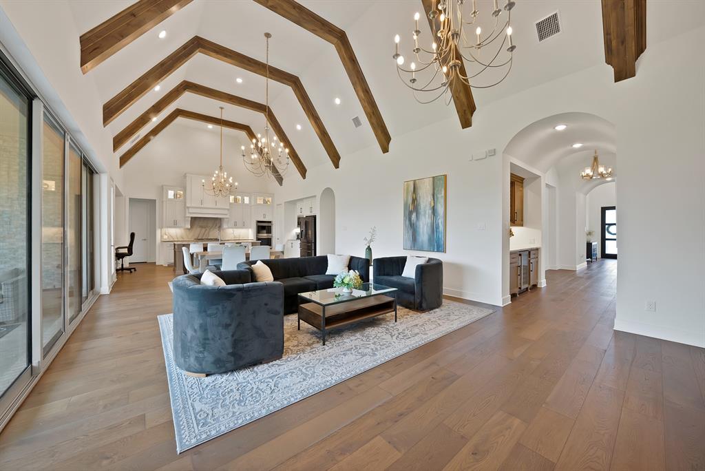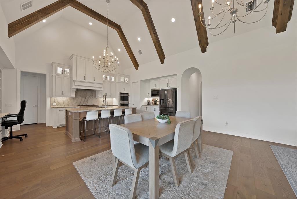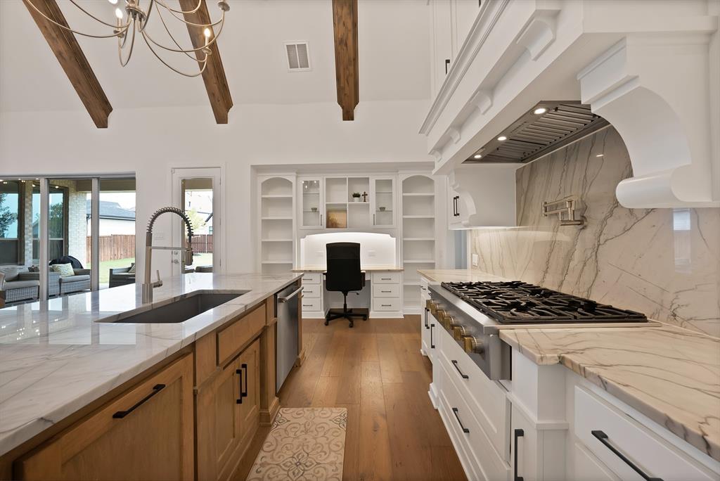 Welcome to this stunning Highland Home, Plan 673, located in the highly sought-after master-planned community of Star Trail and Prosper ISD! Situated on an expansive 86ft lot, this home combines elegant design, modern upgrades, & incredible community amenities. Step inside through impressive double entry doors & enjoy soaring ceilings, open floor plan, & designer finishes throughout. The home features 5 bedrooms, 5 full baths, & 2 half baths, along with a private study complete with beam details & hidden bookcase door. Entertain in style with a formal dining room, wine bar, & barrel ceilings. The primary retreat is a true sanctuary with barrel ceilings, a spa-like bathroom featuring a double vanity & a make-up counter, a stand-alone tub, walk-in shower, & an exquisite walk-in closet with custom built shelving floor to ceiling & a built in dresser. The open living room impresses with vaulted ceilings, exposed beams & a sleek fireplace with striking floor-to-ceiling tile. The chef's kitchen is a dream, boasting a gas range, double ovens, an oversized island & counter space, & a convenient nook office. Indoor Outdoor living shines with a large sliding glass door that opens to an extended covered patio with fireplace perfect for entertaining or relaxing. Upstairs offers a versatile retreat complete with a wet bar, sink, beverage fridge, microwave, bar top seating, a spacious living area, bedroom, and both a full and half bath- ideal for guests or multi-gen living. Additional highlights include a 3 car J-Swing garage & an oversized backyard with plenty of space play or enhancements. Residents enjoy resort-style amenities, sparkling pools, tennis,pickleball courts, playgrounds, lakes, & miles of tree-lined walking trails. Conveniently located near the DN Tollway and Hwy 380, you'll have easy access to shopping & dining at the Gates of Prosper, golf & entertainment at the PGA & the highly anticipated Universal Studios. This home truly blends luxury, comfort and lifestyle!